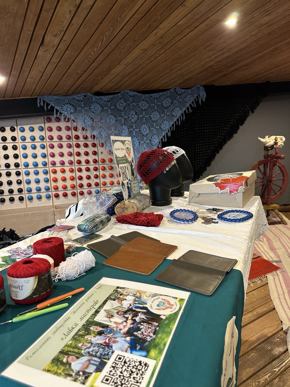 Участники ткали на мини-станках и унесли домой свои коврики, прядали на русской прялке, вязали крючком шапочки или плели макраме-украшения в красных тонах.